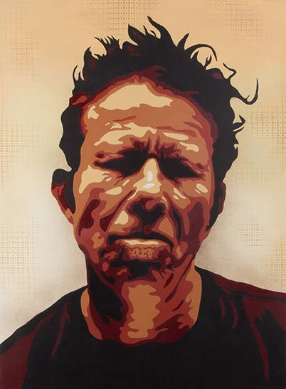Providence, Rhode Island-based painter Reason creates hand-stenciled portraits of familiar public figures, from Gabriel Garcia Marquez and Tom Waits (pictured). The artist, who had his second solo show at OneWay in the fall of 2014, says of his portrait collection, “This body of work reflects a never-ending obsession with two major aspects of everyday life: things fed to us by the white noise of consumer existence; and the battle between the acceptance and denial of death, otherwise known as the human condition.” He adds, “But really, it just looks dope.”